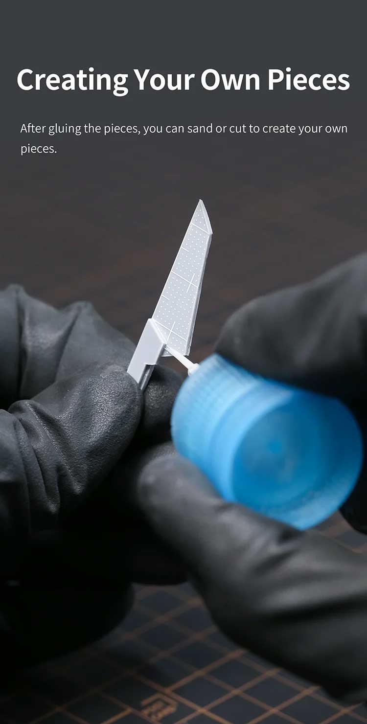 Tip: Use a sharp hobby knife or scribing tool to score and snap; sand edges lightly for crisp finishes. Clean the surface before gluing or painting for optimal adhesion.