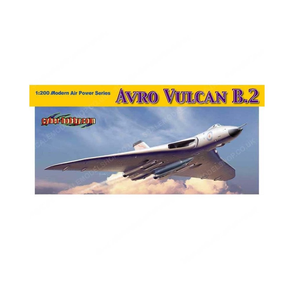 1/200 Avro Vulcan B.2 Disc Dragon 2011Features:- Newly tooled one-piece wings produced- Authentic Avro Vulcan B.2 produced- Engine inlets greatly designed w/details- Intricate fiberglass radome- Delicate cockpit produced- Optional thermonuclear missile assembly- Landing gear can be assembled in either flying or taxing modes- Engine exhaust nozzle has internal detail- Cartograf decals with various marking optionsIts been some time since our last 1/200 scale aircraft kit. But the wait is over, with an intriguing new model that is built to the very best contemporary standards. The Avro Vulcan played an important role as a strategic bomber from 1953-84. For more than 30 years during the height of the Cold War, this aircraft armed with nuclear bombs was ready to deter foreign nations from attacking Great Britain. Operated by the RAFs V-bomber force, the Vulcan was a delta-wing design that flew at subsonic speeds at high altitude. A total of 134 Vulcans were manufactured, with the second tranche known as the B.2 being the most common. The B.2 featured larger and thinner wings, while a greater fuel capacity offered a cruising range of 7,400km. It also had improved equipment such as electronics and radar.This new Cyber Hobby model of an Avro Vulcan B.2 is precisely made to 1/200 scale. Panel lines are sharply scribed, including both the top and bottom surfaces of the large wings. Parts are wisely separated in order to produce the most accurate model possible, plus it is a pleasure to build. To make it even more appealing, this model Vulcan B.2 carries a Blue Steel missile beneath its belly. The Blue Steel was a rocket-propelled nuclear stand-off missile that was in British service from 1963-70. This air-launched nuclear missile had a speed of Mach 2.3 and range of 240km. This fine model commemorates the important role the Vulcan played in the Cold War for a period of three decades before the bomber was eventually superseded by the Tornado.