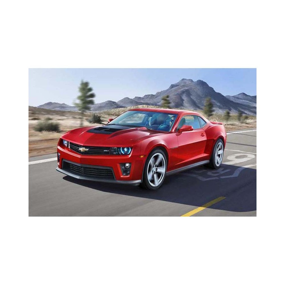 According to Chevrolet the name Camaro is derived from the French word camarade , which can be translated to mean comrade or friend . In production since 1967 the Camaro has more than lived up to its name. Whereas the first Camaros were just muscle cars the new ZL1 really does show its muscles. 580 bhp delivered from a 6.2 litre V8 engine unleashes a fearsome 750 newton meters (553 ft/lbs) of torque onto the rear axle. After only 4 seconds the speedometer sweeps past the 100 km/h (62 mph) mark as it continues to climb right up to 290 km/h (180 mph). Thanks to state of the art technology in the chassis, these forces are held in check in the true style of European sports cars. With the new Camaro ZL1, General Motors has stood a super sports car on its rubber slicks which, thanks to its affordable price is also competitive in Europe.- An ideal kit for beginners and people returning to the hobby: all body-parts are pre-painted. Further painting or decorating of the bodywork is not necessary, but can be undertaken according to the enclosed instructions.