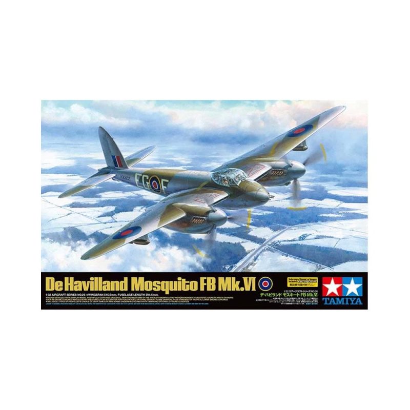 The Tamiya De Havilland Mosquito FB Mk.VI (1/32) celebrates one of WWII’s most remarkable aircraft. Nicknamed the “Wooden Wonder”, the Mosquito was a fast and versatile twin-engine fighter-bomber made primarily of wood. The FB Mk.VI variant, introduced in 1943, featured a deadly combination of four 7.7mm machine guns and four 20mm cannons, plus the ability to carry bombs. This kit brings that legacy to life with exceptional detail and accuracy.