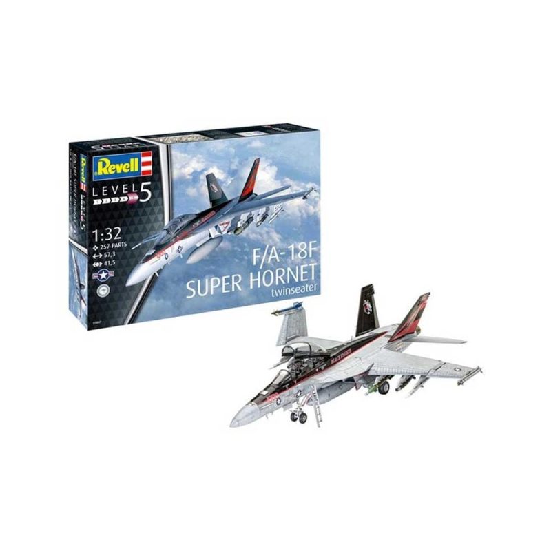 The F / A-18 Super Hornet has replaced the legendary F-14 in the US Navy as a carrier-based fighter aircraft. Like the Tomcat the “F” model has a two-seater cockpit in which a weapons system officer sits behind the pilot and is responsible for the tactical use of the on-board electronics, weapons and navigation systems.Cockpit with instrument panelsDetailed ejection seatMoveable rear stabilatorsDetailed under-carriageExtensive assortment of weapons and external loadsscope of delivery:Plastic model kit (non-assembled)Illustraded, multilingual assembly instructionsDecal set
