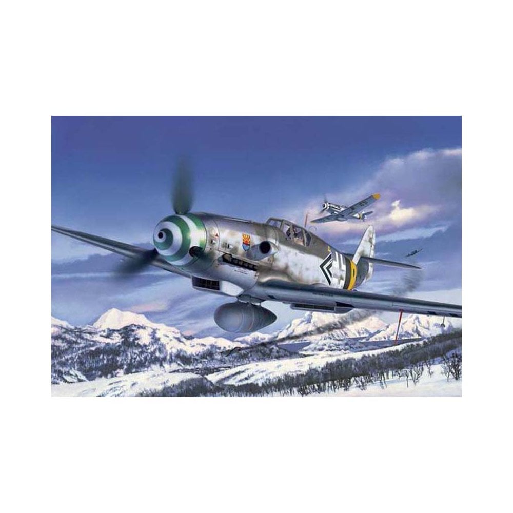 The Bf109 is one of the Luftwaffe’s most famous World War II fighter aircraft. More than 33,000 Bf109’s were built in many different versions. Both its climbing capability and acceleration in the dive were two of the Bf109s strong points. In production since the summer of 1942, the Bf109G series displayed some noticeable changes compared with the previous Bf109F version. The G-5/G-6 had a MK 151/20 mm cannon firing through the engine. Two MG 131 machine guns were installed above the engine. The belt-feed to the uprated armament necessitated aerodynamic modifications to the engine cowling’s which gave the aircraft its characteristic bumps .