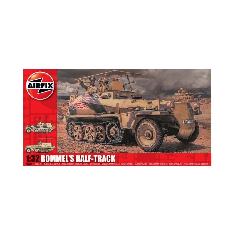 Number of Parts: 214 Dimensions (mm): L152 x W60General Rommel was often known to be in the field watching the situation on the battlefield whilst protected in his standard Sd.Kfz 250/3 Semi-Tracked Reconnaissance Car. Rommel named this car “Greif” (meaning “Griffon”). This kit comes with a model figure of the General himself, his driver and his observer.