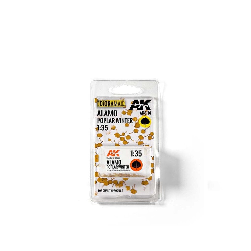 1/35 Alamo Poplar Winter AK Interactive AK8114REALISTIC LEAVES Inclusion of these leaves will bring a distinctive and ultra-realistic touch to your dioramas and vehicles. They can be easily fixed in place with tiny quantities of white glue, diluted white glue, or using our original AK118 Gravel & Sand Fixer. Their size makes them usable for 1:35, 1:32 or 1:48 scale projects.