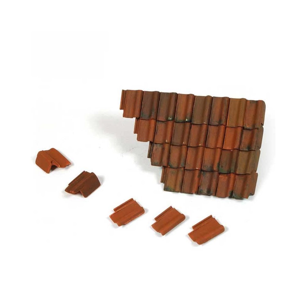 A section of a ruined roof and 12 roof tiles of European design, useful for setting in a diorama or vignette.Accessories supplied unpaintedScale 1/35(1+12)
