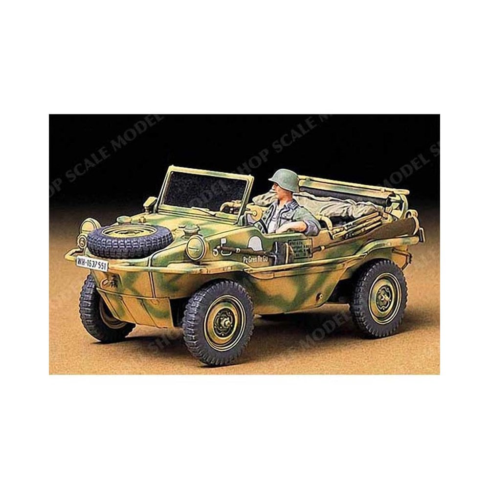 This 1/35 scale Tamiya kit recreates the German Schwimmwagen Type 166, the most widely produced amphibious car of WWII. Based on the Volkswagen design by Dr. Ferdinand Porsche, the Type 166 was engineered for reconnaissance, liaison, and support duties across varied terrain, including rivers and coastal areas.