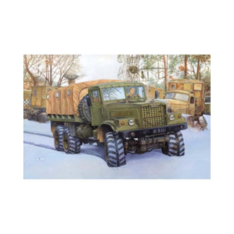 1/35 Kraz-255B Roden 805In the mid-1960s the Kremenchug automobile plant manufactured the KrAZ-214B truck in large quantities, playing a very important role in the structure of the motorized forces of the Soviet Army. This truck was assigned the role of a transporter of various auxiliary engineering installations, as well as of fuel, missile systems, etc. Considering the operating conditions of the KrAZ-214B in the territory of the USSR where normal paved roads are absent by definition in most areas (and especially where its secret military units were dispersed and as a rule they didn’t exist at all), the military authorities demanded improvement in the cross-country ability of the vehicle. For this purpose the Bureau SKB-1 designers developed a new type of wheel in 1966, the VI-3.Unlike the narrow wheels of all other types then existing for Soviet vehicles, the VI-3 had a wide profile, and also could be pumped up with air while moving – thus changing the pressure in the tire which offered crucial advantages in altering the area of surface contact of the truck’s wheels. The centralised tire pressure control system, managed by the driver, also had one more essential advantage in a military vehicle – in case of gunfire holing a tire, the driver could strengthen the wheel’s air pressure and, thus, the truck could drive on notwithstanding a degree of damage.The KrAZ with its new wheels looked like a bear – the car became visually more massive although externally, except for the wheels, and also its headlights and a new form of fuel tank, it didn’t differ greatly from its predecessor. However another essential difference of the new truck, designated the KrAZ-255B, was hidden inside, under the hood. The KrAZ-255 received a new, more powerful ‘heart’ – the powerful