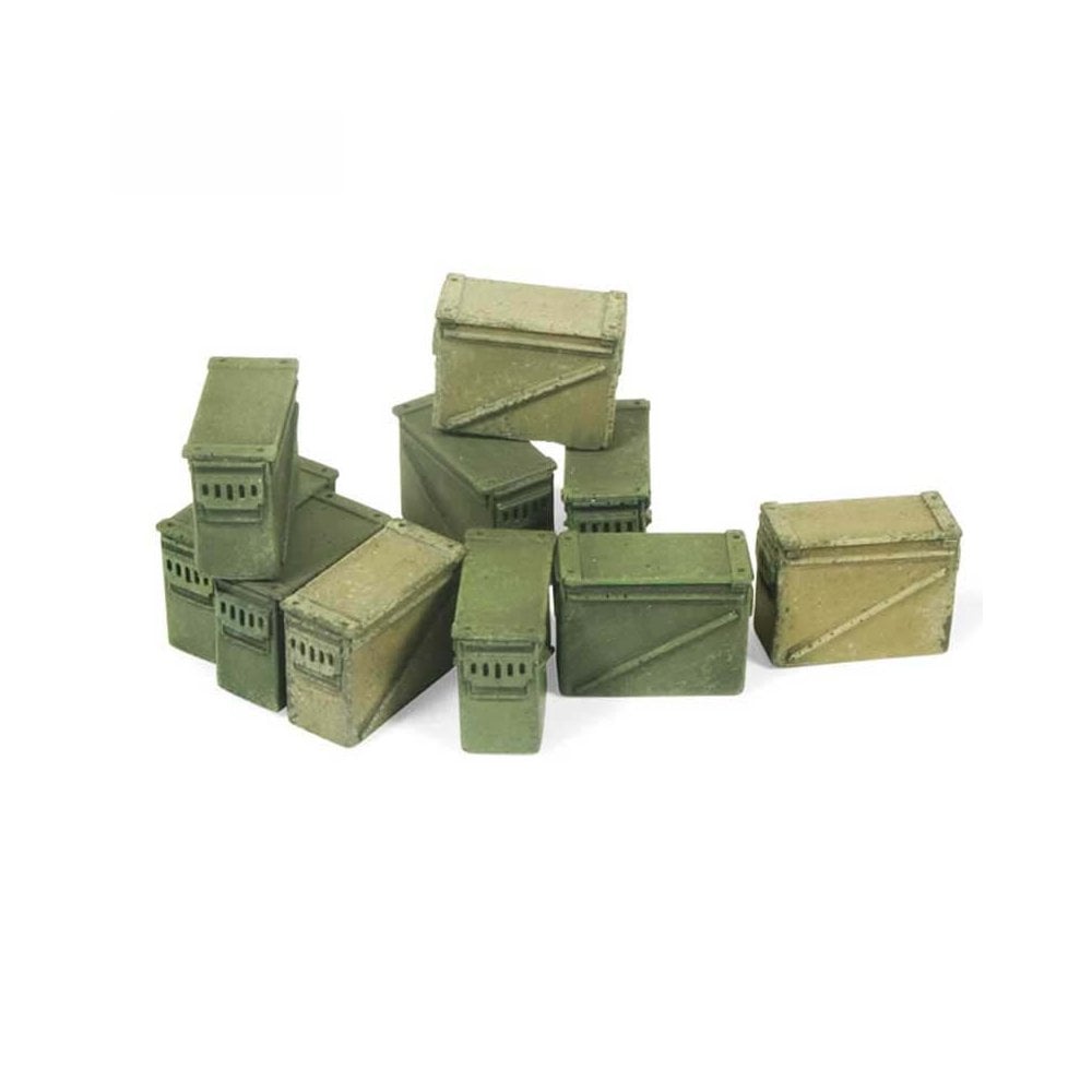 Ten large ammo boxes for the 12,7 mm projectiles used in the machine guns M2HB and M2QCB type Browning M2.Accessories supplied unpaintedScale 1/35(x10)