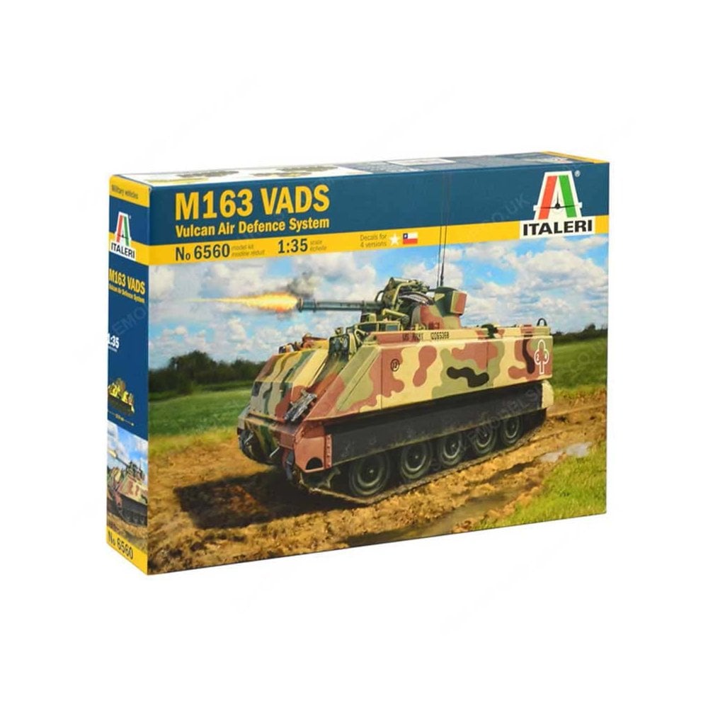 1/35 M163 Vads Italeri 6560COLOR INSTRUCTION SHEETThe M113 is one of the most famous armoured personnel carrier in the history of military vehicles. It has a fully tracked layout and it entered in service at the beginning of 60s. The M113 was the most widely used armoured vehicle of the U.S. Army and the U.S. Marine Corps in the Vietnam War. On the M113 hull was developed the self-propelled anti-aircraft gun M163 VADS (Vulcan Air Defense System). The M163 adopted the General Dynamics 20 mm. M61 Vulcan rotary cannon, installed in a small turret above the hull, and a radar system for the control of the fire. The M163 was designed to complement the M48 Chaparral missile system and to provide the highest level of anti-aircraft and anti-helicopter defense to the ground troops. The huge firepower of its 20 mm gun could however also be used, with devastating effects, against terrestrial targets. The M163 was mainly used by the United States Army and it is still used today by many Countries.