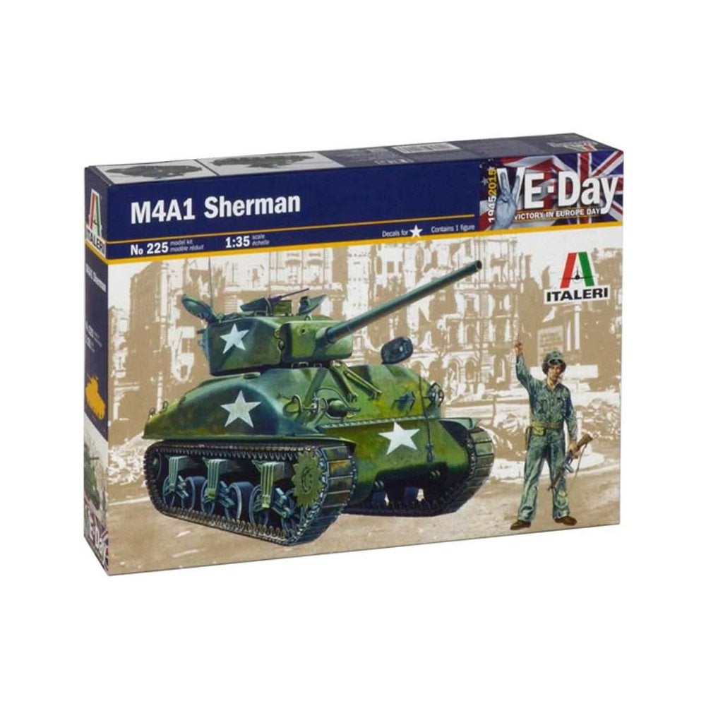 M4A1 SHERMANIn 1941, after the German attack on Russia, it became clear to the UNITED STATES that possibility of an American involvement in the war was becoming more and more inevitable. For this reason, President Roosevelt ordered substantial production increases of the medium tank M4. The tank was not a completely new model, since it derived from the previous model M3 Grant. The Sherman had some major improvements on the superstructure and on the armament as well as on the welded or cast hull. The General Sherman, under which name the new tank was soon to be known, was equipped with a 75 mm gun, which was, however, insufficient against the German Tanks. This necessitated a series of changes, including a completely new turret as well as a 76 mm gun, which would be more efficient than the previous one. The new prototype was given the designation M4 A1. In January 1944, the new type was introduced. Until the end of the war, about 3400 pieces were produced. Notwithstanding the improvements, there were still many defects, one of them being the lack of protection. Frequently the crew was forced to protect the tank sides and the front with sandbags. In some instances the most exposed track sections were covered and sometimes even cement or steel blocks were attached. Tanks to its numerical superiority, the tank was able to match the German tanks, using its great maneouverability and its excellent 76 mm gun. M4 A1 took part in the invasion of Normandy and in all European theatres.