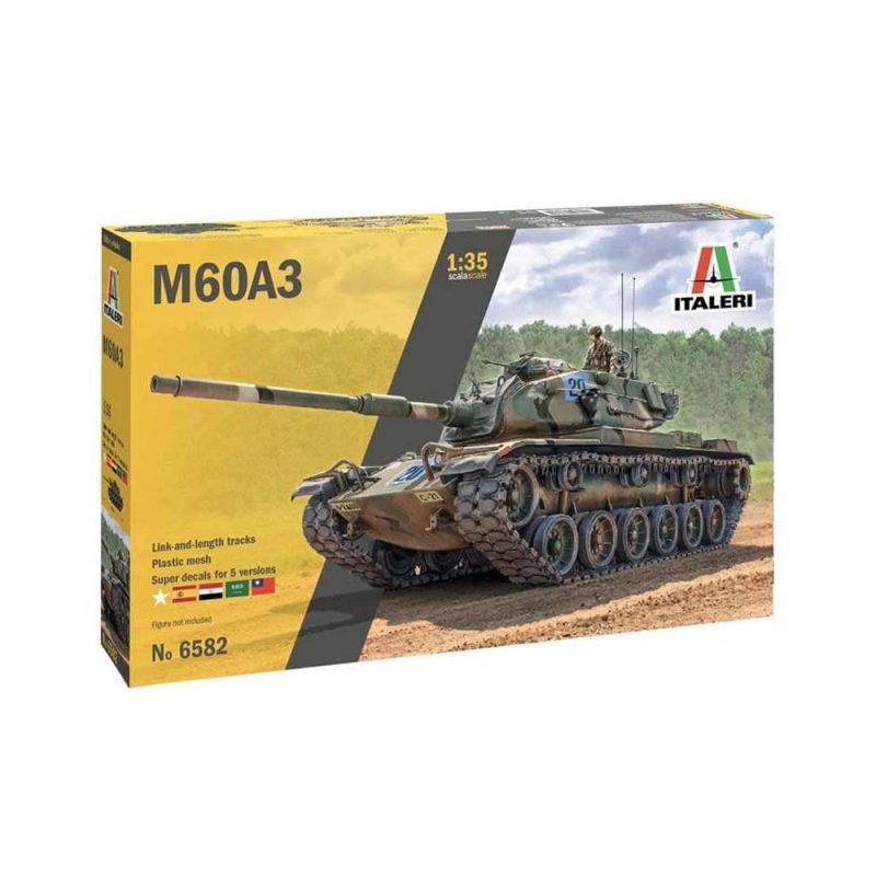 LINK-AND-LENGTH TRACK – PLASTIC MESH – SUPER DECALS FOR 5 VERSIONS – COLOR INSTRUCTIONS SHEETFIGURE NOT INCLUDEDThe M-60 was introduced in the first years of ?60s in the United States Army. It was developed and designed to be the evolution of the famous tanks M-47 and M-48 Patton series. The M-60 became the most important MBT (Main Battle Tank) of the U.S. Army during the Cold War years. It was produced, until 1983, by the American company Chrysler in 15.000 units and it was adopted, in several versions, by the armed forces of numerous countries all over the World. The main armament, installed in the turret, was the 105 mm. M68 gun. The M-60 was characterized by its big size and by the adoption of the powerful V12 turbodiesel engine able to release a good operating performance and a good speed on-road and off-road. It was deployed in a lot of conflicts and operational scenarios. In 1976 the new upgraded M60A3 version was developed and it was characterized by several improvement able to enhance the operation effectiveness. The armor protection for the turret was increased and a new gun mantle was designed. Great improvement in the adoption of modern electronic and fire control systems on board.