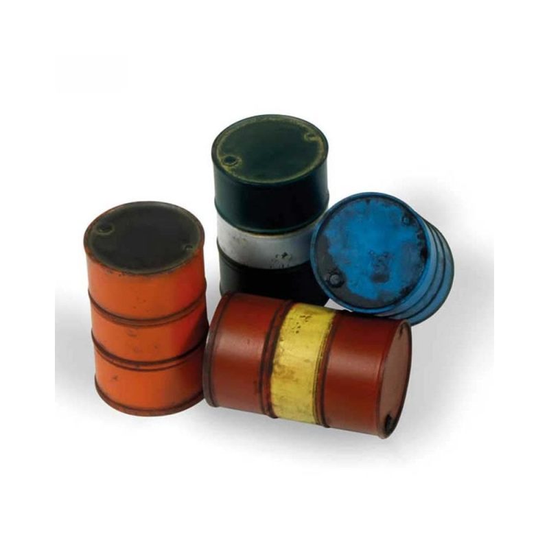 Four modern fuel drums with screw caps on the top, for civilian and general storage of gasoline and other fuels such as heavy oils.Accessories supplied unpaintedScale 1/35(x4)