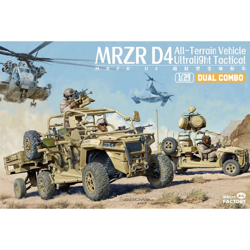 This Magic Factory Models 1/35 scale kit depicts the MRZR D4, a modern ultra-light tactical all-terrain vehicle designed for rapid deployment and versatility in challenging environments. The model features accurate proportions, intricate moulding, and finely detailed components, making it ideal for contemporary military diorama settings.