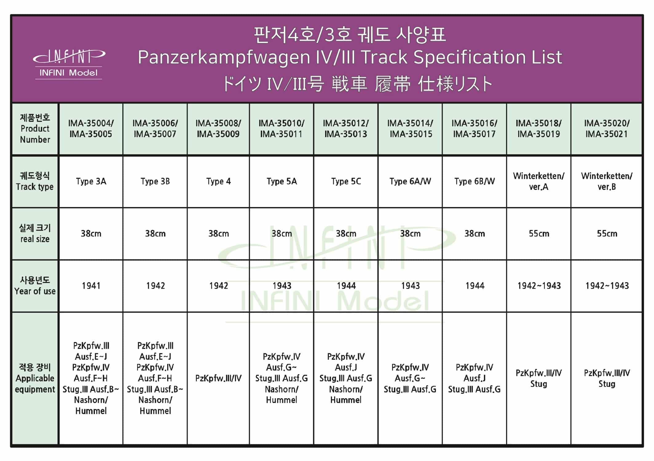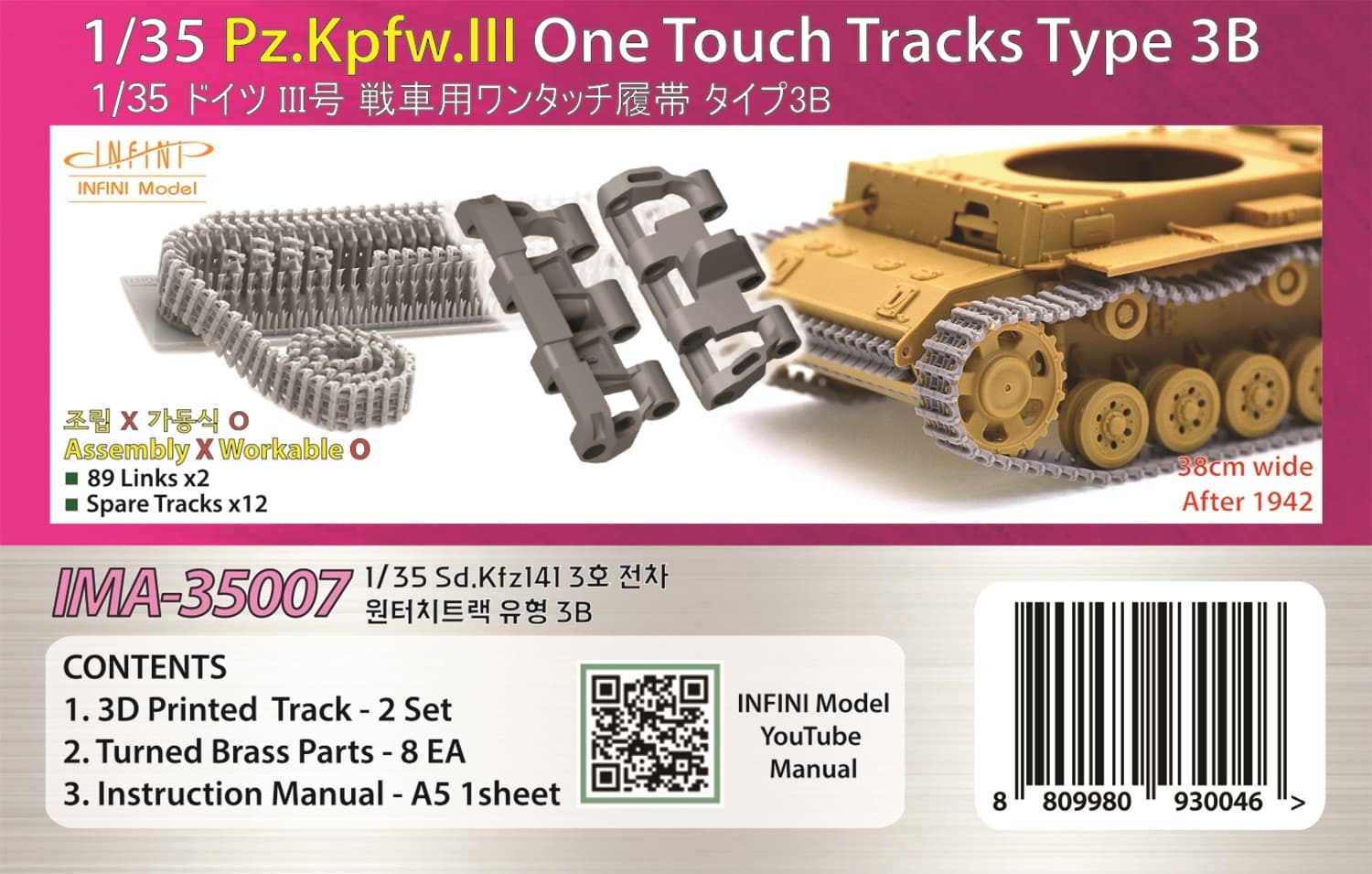 1/35 Pz.Kpfw.III One Touch Tracks Type 3B Infini Model IMA-35007