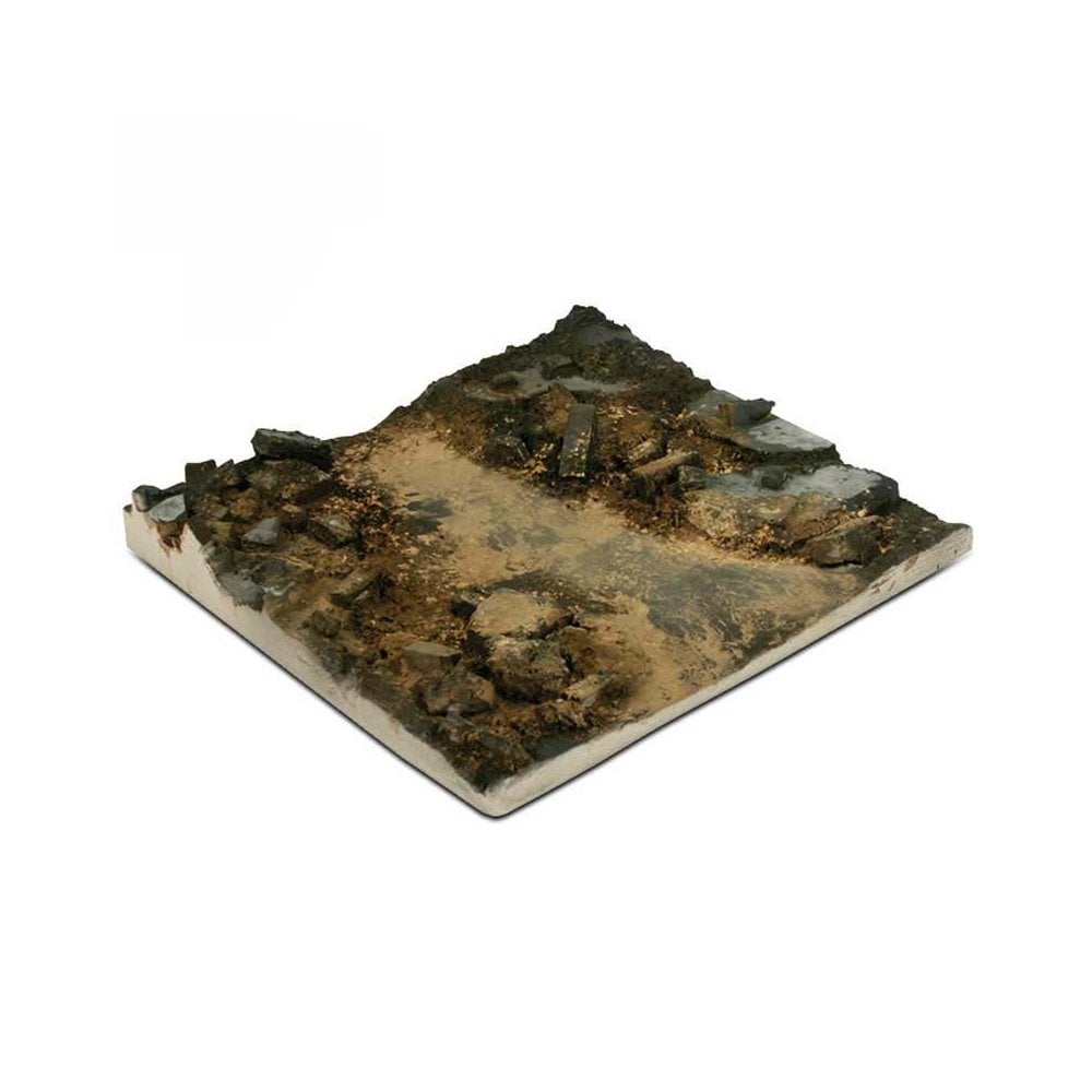 Section of road, cleared amidst ruins, appropriate for placing the remains of a destroyed vehicle, perhaps accompanied by figures and troops in movement, or with science fiction or fantasy themes, any of these can be situated in this environment while the modeller ads as many details as considered suitable and in context.Base supplied unpaintedScale 1/3514≥14 cm/5,51≥5,51 in
