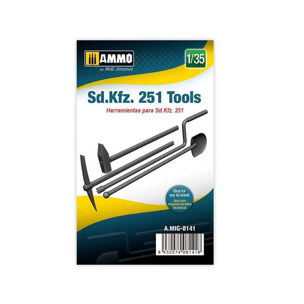 1/35 SD.KFZ. 251 TOOLSHERRAMIENTAS PARA SD.KFZ. 251Tools for the WWII German half-track Sd.Kfz. 251. Can be used on all Sd.Kfz. 251 in 1/35th scale, ideal for any kit brand.