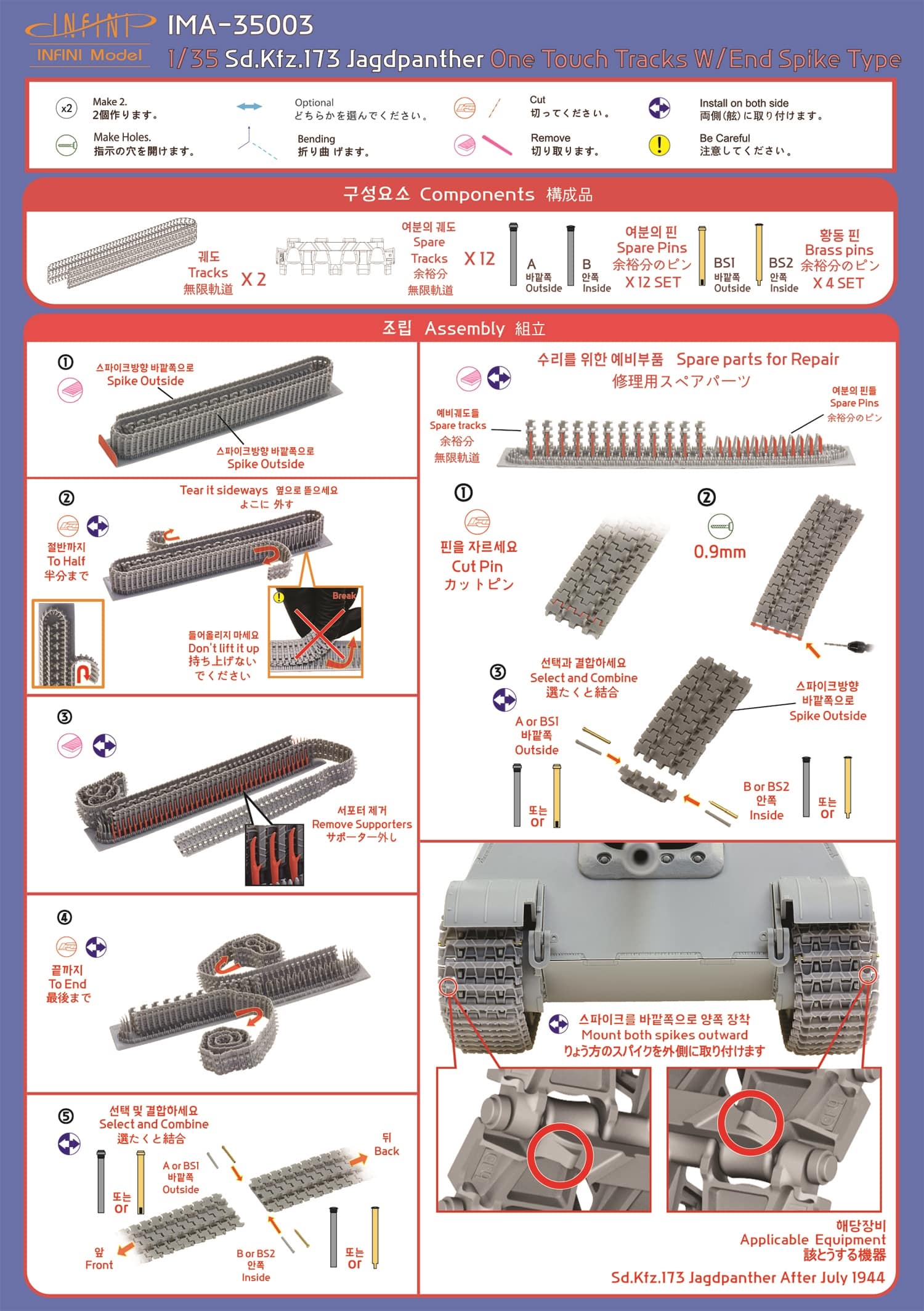 1/35 Sd..Kfz173 Jagdpanther One Touch Tracks w/ End spike Type Infini Model IMA-35003