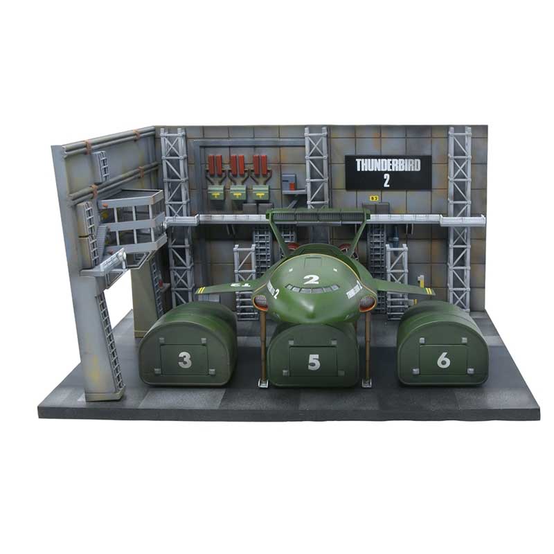 Hidden below a false rock face on Tracy Island is the hangar of International Rescues heavy transport aircraft Thunderbird 2. Upon receiving an emergency call pilot Virgil Tracy will select one of the container pods to be carried inside Thunderbird 2, each pod containing a different specialist rescue vehicle. Kit parts moulded in multicolours.
