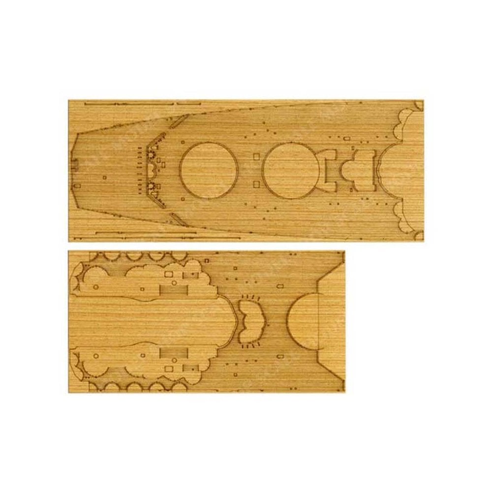 This accessory set from Tamiya is designed to enhance the finish of the 1/350 scale Japanese Battleship Yamato (Tamiya kit 78025). The set includes two precisely printed and pre-cut deck sheets that allow you to accurately replicate the appearance of Yamato’s wooden deck without the need for painting or weathering.