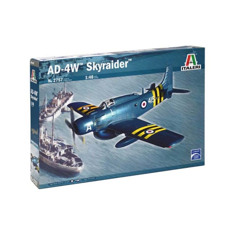 The Douglas Skyraider was manufactured immediately after War World II. Despite its traditional piston motor, in an age when jets were spreading, the Skyraider had an extraordinary long career. It made its first flight in 1945 and it was retired from service only in 1975. It has participated to several conflicts, demonstrating its value in Korea and in Vietnam. Characterised by low speed manoeuvrability, it was able to transport impressive war cargos of over 3,500Kg. Perfect for ground attack missions, it was provided with robust armour to minimise fire damages from the enemy. The AD-4W three-seat (one pilot and two observers) airborne early warning version has been developed from its robust and reliable design. It has built in more than 150 units and it has been characterized by the big radome, the adoption of radar picket system to look and acquire potential targets, and the adoption of advanced communication system.