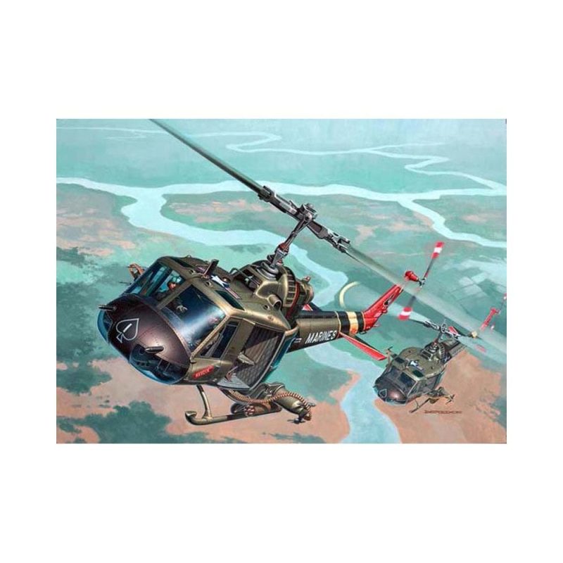 The Bell UH-1 Iroquois – better know as the Huey – gained fame when it was used by the American forces in the Vietnam War of the sixties. It became an irreplaceable piece of modern battlefield equipment that saw rescue, troop transport and armed escort duty. When the heavy machine guns, rocket pods and nose mounted grenade launcher were introduced, the UH-1B and C received the nickname Huey Hog . It was also flown by the Marine Corps as the UH-1E.Model- Structurally detailed surfaces