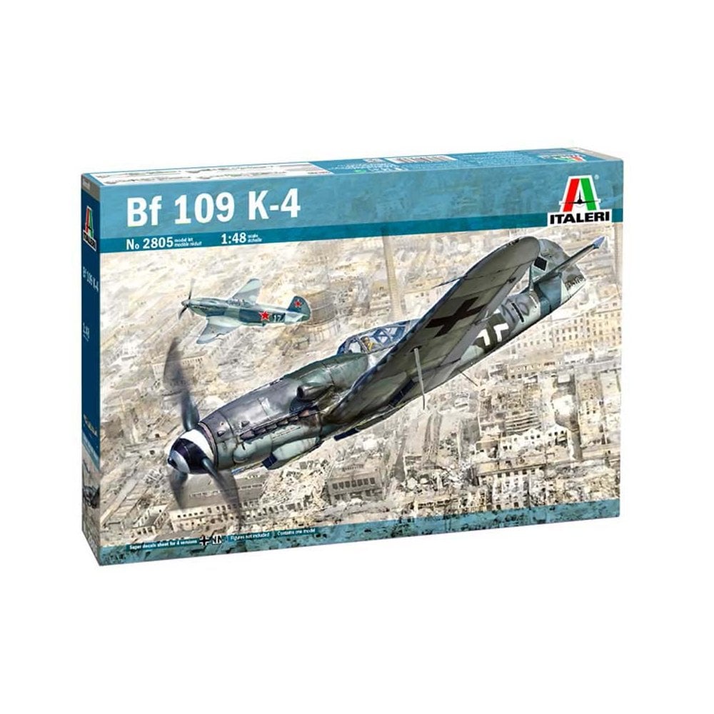 SUPER DECALS SHEET FOR 4 VERSIONS – COLOR INSTRUCTIONS SHEETFIGURE NOT INCLUDED – CONTAINS ONE MODELThe Messerschmitt Bf 109 is undoubtedly one of the best-known fighters of the Second World War and is considered an iconic aircraft of the German Luftwaffe. During the conflict the engines and armaments were regularly upgraded to be kept in line with the emerging, more modern enemy fighters. The Bf 109 K-4 Kurfrst, introduced at the end of 1944 and substantially derived from the G model, was the last version produced of this famous German fighter. It was equipped with a powerful 2000 HP Daimler-Benz DB 605 supercharged engine and was able to exceed 720 km/h. Another notable feature was its impressive climbing capability which was even superior to that of allied fighters. Armed with a powerful 30 mm MK108 cannon installed in the propeller hub, and with two MG 131 13 mm. machine guns. on the engine cowling, the Bf 109 K-4.