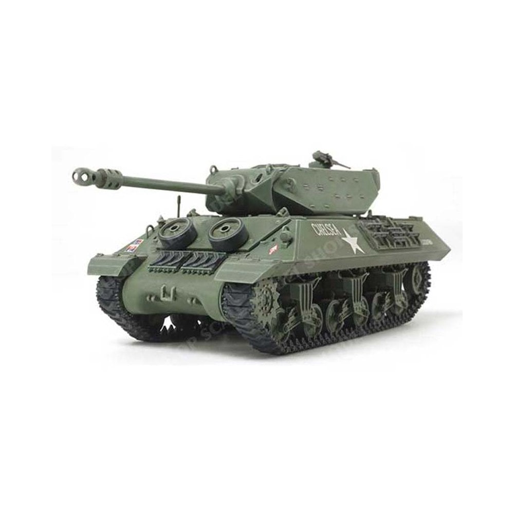 This 1/48 scale Tamiya kit recreates the British M10 IIC Achilles tank destroyer, a formidable conversion of the U.S. M10 provided under the Lend-Lease program. Based on the M4 Sherman chassis, the M10 featured lighter, more steeply sloped armour for speed, but the British replaced its original 3-inch gun with their powerful 17-pounder anti-tank gun, dramatically improving its ability to take on heavily armoured German tanks.