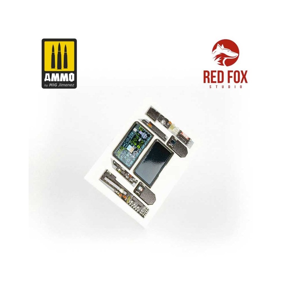 Red Fox Studio manufactures 3D acrylic resin instrument panels and details for aircraft cockpits in several scales. With a wide-ranging catalogue featuring references for the most popular aircraft, as well for the most popular scale model kits. These upgrade details easily and substantially improve the original kit cockpits, as they are pre-painted not even the smallest detail is lost! The placement of these components is easy, simply separate the part from the support and glue it in place using Ultra Glue (A.MIG-2031). The parts can also be washed with AMMO enamel or acrylic paints, and varnished with acrylic based varnishes. In addition to adjusting each cockpit detail to the correct scale, each piece features a hyper-realistic finish on the instruments, gauges, and displays, imitating the reflection of the glass bezels. These detail components also feature accurate colours for each and every one of the buttons, controls, and stencils that can be seen on the instrument panels of real aircraft, providing an exact replica of the most complex areas of your favourite subjects. These accessories will save you considerable time and painting steps when detailing the interiors of your models, providing you with a much more realistic finish than is possible when painted by hand.