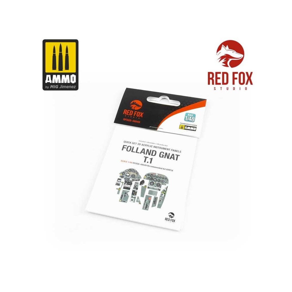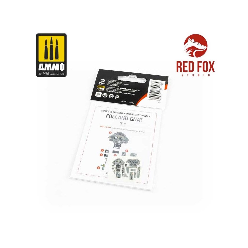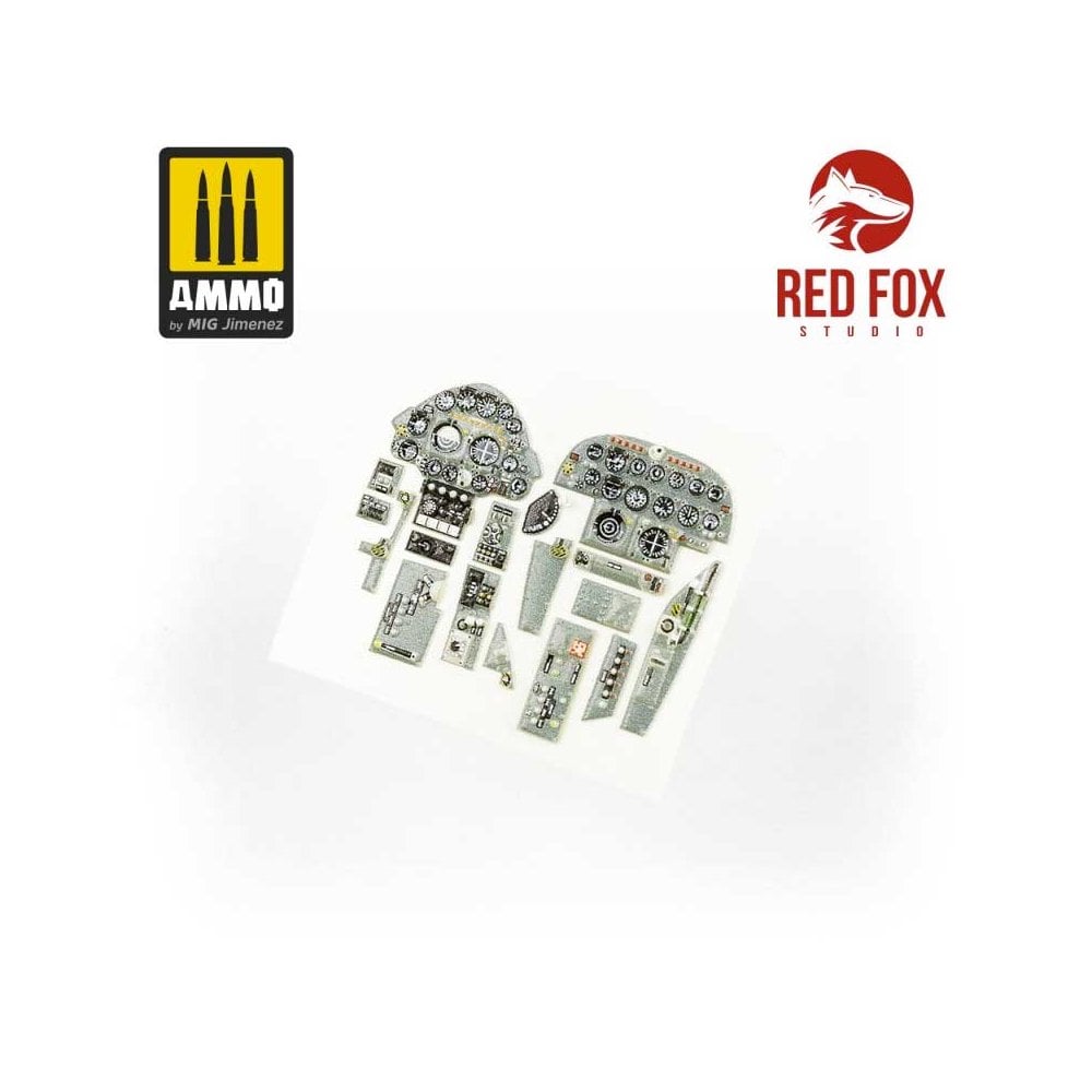 Red Fox Studio manufactures 3D acrylic resin instrument panels and details for aircraft cockpits in several scales. With a wide-ranging catalogue featuring references for the most popular aircraft, as well for the most popular scale model kits. These upgrade details easily and substantially improve the original kit cockpits, as they are pre-painted not even the smallest detail is lost! The placement of these components is easy, simply separate the part from the support and glue it in place using Ultra Glue (A.MIG-2031). The parts can also be washed with AMMO enamel or acrylic paints, and varnished with acrylic based varnishes. In addition to adjusting each cockpit detail to the correct scale, each piece features a hyper-realistic finish on the instruments, gauges, and displays, imitating the reflection of the glass bezels. These detail components also feature accurate colours for each and every one of the buttons, controls, and stencils that can be seen on the instrument panels of real aircraft, providing an exact replica of the most complex areas of your favourite subjects. These accessories will save you considerable time and painting steps when detailing the interiors of your models, providing you with a much more realistic finish than is possible when painted by hand.
