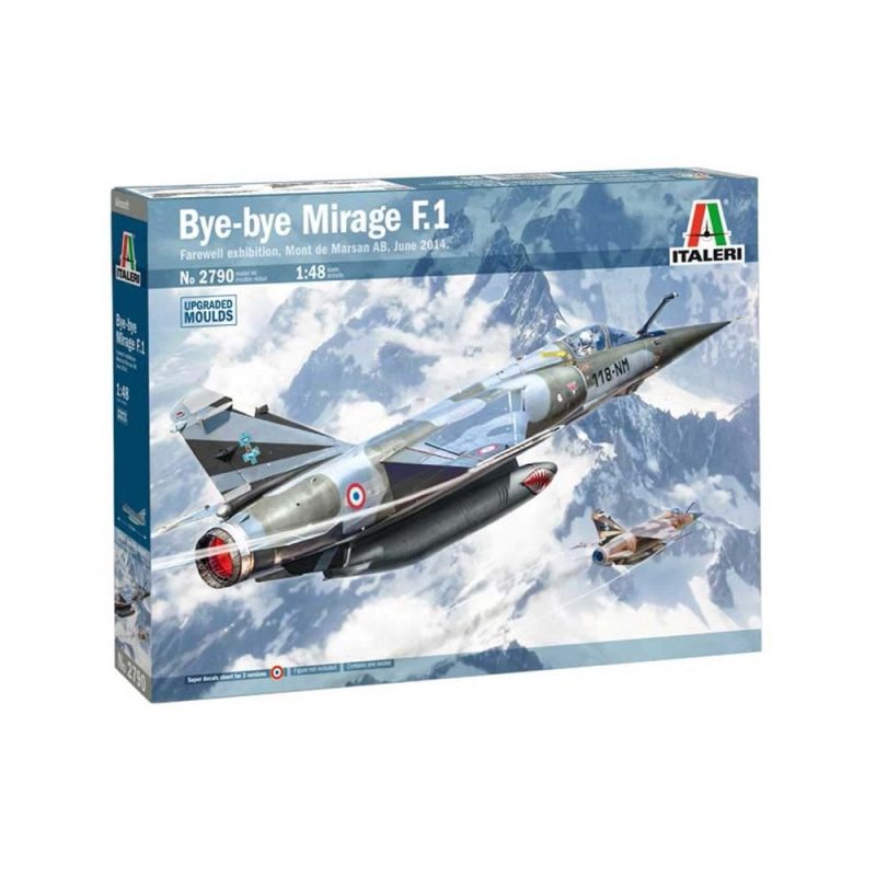 1/48 Mirage F1 Ct/Cr Italeri 2790UPGRADED MOULDS – SUPER DECALS FOR 3 VERSIONS – COLOR INSTRUCTIONS SHEETThe Mirage F1 was developed by the French aircraft manufacturer Dassault to equip the French Air Force (Arme de l’air) squadrons with a modern multi-role fighter. The Mirage F1 entered service at the beginning of the seventies and was characterized by a shoulder-mounted swept wing and the adoption of the Snecma Atar turbojet engine giving the aircraft a max speed of Mach 2,2. During the years, several versions of the F1 were produced and most of them dedicated to export. For instance the Mirage F1 CR was set to perform aerial reconnaissance tasks adopting internal equipment and external pods. The Mirage F1 CT was the ground attack version and was developed to replace the old Mirage IIIE. It was improved with more modern avionics and ground targets identification and tracking systems.