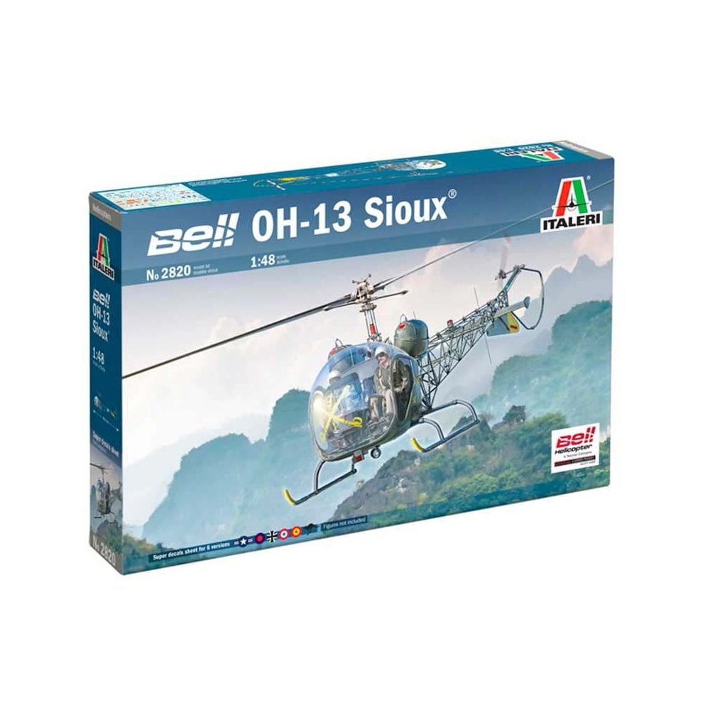 SUPER DECALS SHEET FOR 6 VERSIONS – COLORS INSTRUCTIONS SHEETFIGURES NOT INCLUDEDThe American Bell OH-13 is one of the most iconic helicopters in aviation history. Developed immediately after the Second World War, it was distributed to the U.S. Army in the late 1940s. The “Sioux” was characterized by its distinctive “soap bubble canopy” which made it unique and easily recognizable along with the tail trellis and its two side tanks. The OH-13 was deployed in large numbers during the Korean War to carry out a wide variety of tasks including observation, advanced reconnaissance, and medical evacuation. The OH-13 had a three-seater cabin configuration and could reach a top speed of170 km / h. It was both robust and exceptionally reliable which contributed to its operational longevity.