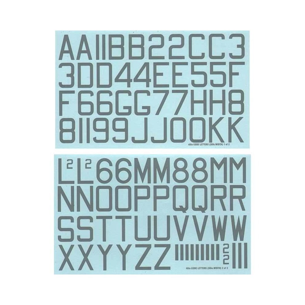 RAF WWII 48 inches x 30 inches bomber squadron code letters and numbers, m/s/grey. Double sheet. (RAF codes/RAF code letters/RAF serial numbers)
