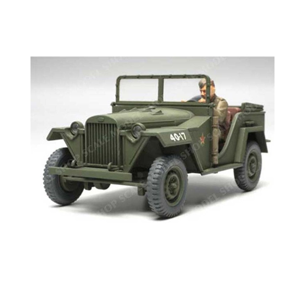 Tamiya continues to respond to the requests of the growing number of 1/48 scale modeling fans around the world with the release of the Russian GAZ-67B Field Car. With its long service history in the former Warsaw Pact countries, this kit can be used in an almost endless variety of dioramas either with other armored vehicles or with aircraft.About the GAZ-67BAt the start of WWII, the Russian army did not have a suitable small 4X4 utility vehicle comparable to the American Jeep or German Kubelwagen. The design team at GAZ (Gorkovski Avtomobilny Zavod) was tasked to develop such a vehicle, and eventually the GAZ-67 was born in 1943. The design was heavily influenced by American Jeep models and prototypes received through Lend- Lease, but although the GAZ-67 had better rough terrain performance than the American Jeep, its reliability was far from stellar. Nevertheless, over 90,000 GAZ-67s were produced from 1943 until well after the end of WWII, and they served with the in the armed forces of Russia as well as various other Warsaw Pact countries.About the ModelHigh-quality 1/48 scale assembly model kit of the GAZ-67B.Vehicles distinctive chassis accurately replicated complete with suspension and driveshaft for added realism.Kit includes one driver figure.All parts, including clear windshield and headlight parts, produced using new precision molds.Three types of markings included (planned).