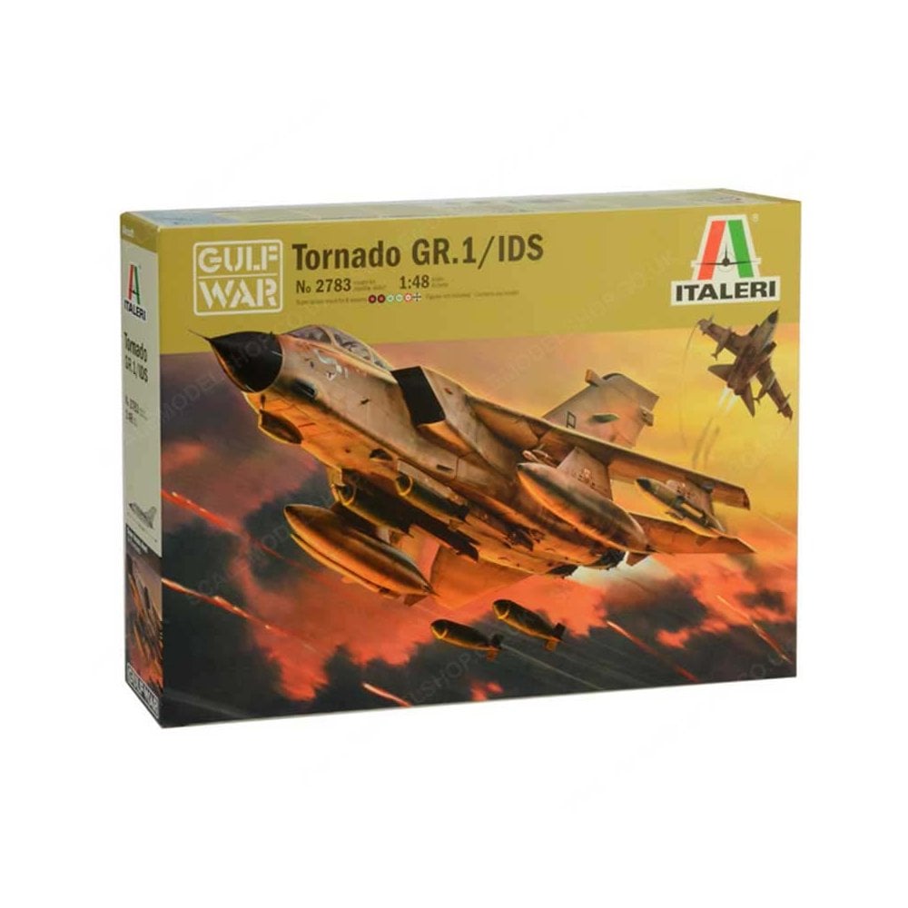 1/48 Tornado Gr.1/Ids – Gulf War Italeri 2783The multirole Tornado is a twin-engine combat aircraft with a variable-sweep wing. This kind of aircraft is the result of a joint development project carried out by British, German and Italian companies. Although during its lifetime it has been used for several purposes (ground attack, electronic combat/reconnaissance, interceptor), its main role has always been to perform low-altitude penetrating strike missions. Tornado can load and use a powerful and varied set of offensive weapons. Thanks to its two powerful afterburning turbofans, the Tornado can reach the max speed of Mach 2.2. The Tornado baptism of fire took place in 1991 during the Gulf War. More in detail, the air campaign of the Gulf War, in which the Italian Tornados IDS took part, began on 17th January. The goal of the aerial bombing campaign was the suppression of military targets and infrastructures.