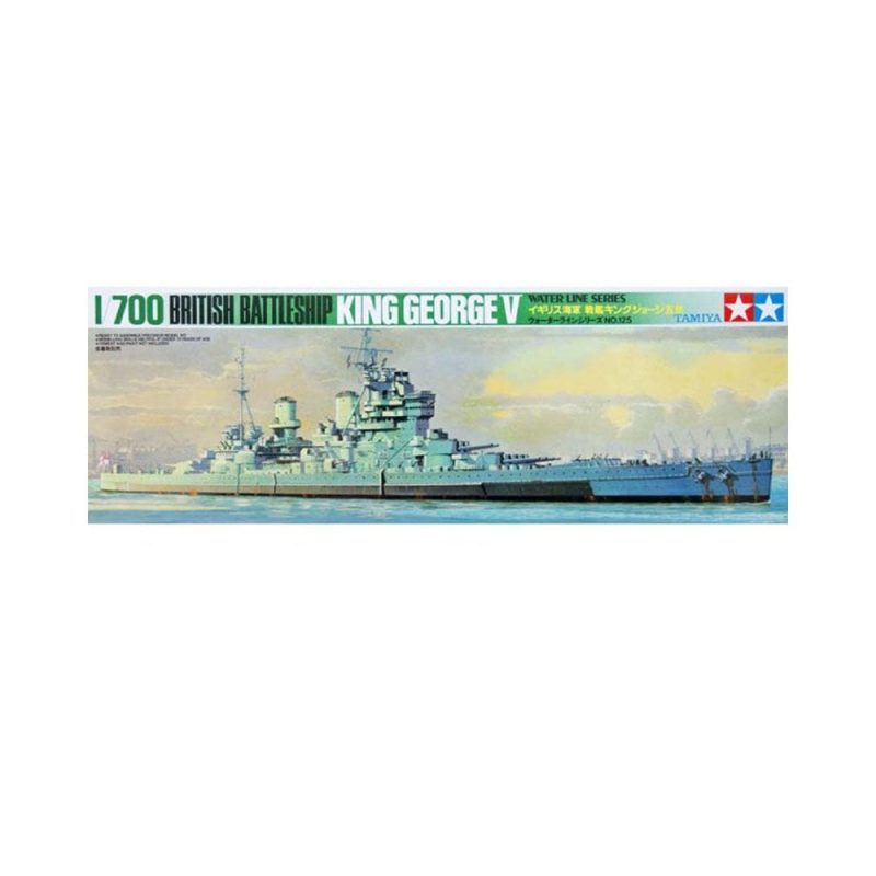 This 1/700 scale Tamiya kit replicates HMS King George V, the lead ship of her class and a key Royal Navy battleship during World War II. Launched in 1939 and commissioned in 1940, she served as flagship of the British Home Fleet and saw action in notable operations including the pursuit and sinking of the German battleship Bismarck, Mediterranean campaigns, and Pacific operations against Japan as part of Task Force 57/37.