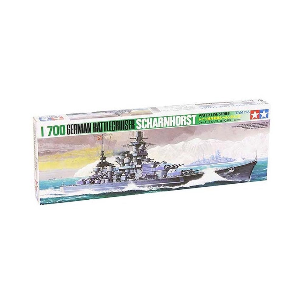 This 1/700 scale Tamiya kit depicts the German battleship Scharnhorst, one of the Kriegsmarine’s most famous capital ships of World War II. Known for her speed, elegant lines, and combat capability, Scharnhorst operated extensively in the Atlantic alongside her sister ship Gneisenau. Capable of reaching 32 knots, she conducted daring raids on Allied shipping and became renowned for her operational range and striking appearance.