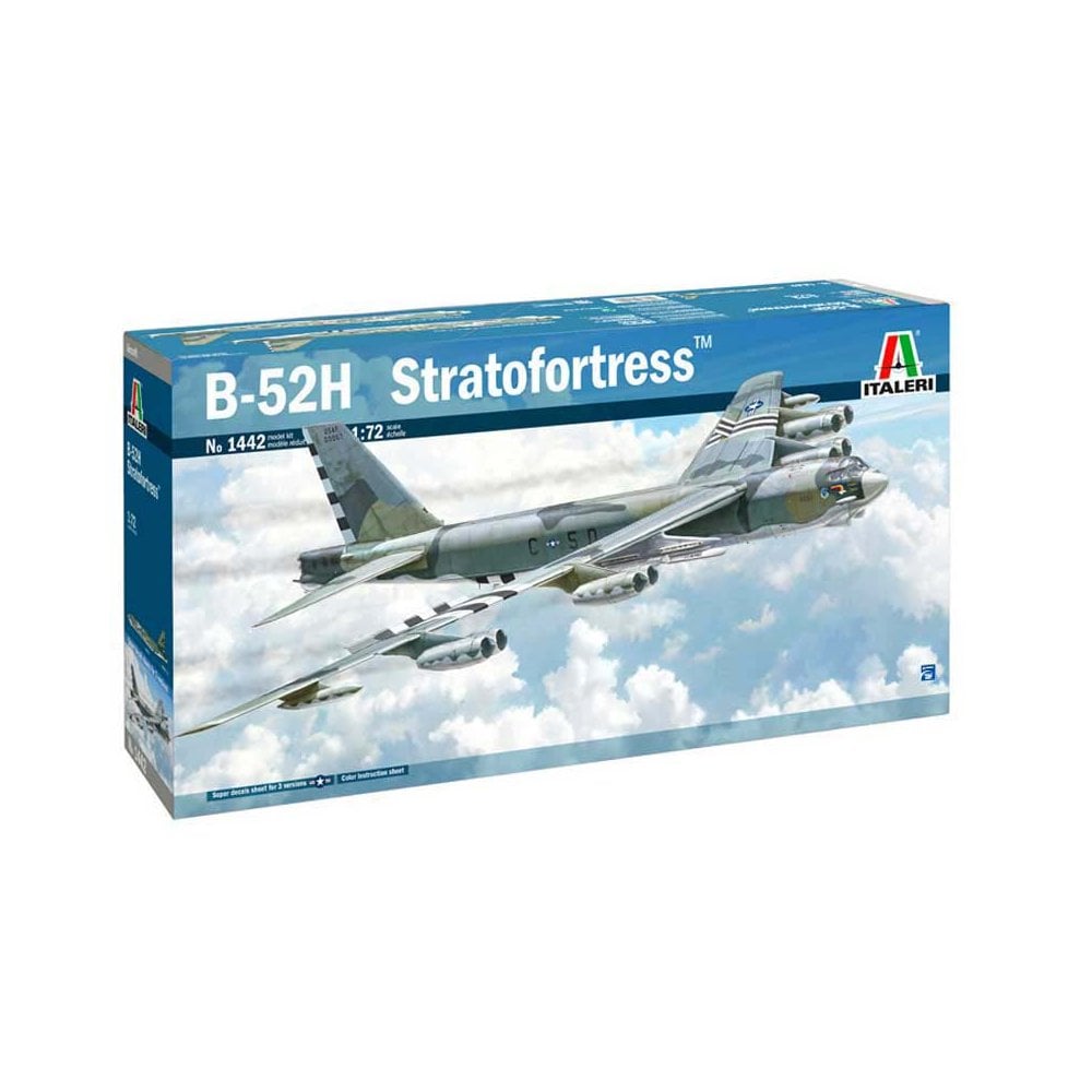 B-52H StratofortressSUPER DECALS SHEET FOR 3 VERSIONS – COLOR INSTRUCTIONS SHEETThe B-52 Stratofortress is the most famous long-range jet-powered strategic bomber in aviation history. First produced by the American company Boeing in 1955, it has become symbolic of the Cold War period between the U.S.A and the former Soviet Union. It was for many years the backbone of the United States Air Force Strategic Air Command. The aircraft was also manufactured in a number of different versions over the years to meet ever changing operational requirements. The B-52H is the most updated version of the famous American bomber and is characterized by the addition of improved engines offering considerably better performance, fuel economy and increased operational range. Other improvements have been made to the avionics, electronic counter measures (ECM) and weapons systems. The B-52 is currently one of the most enduring aircraft in aviation history.