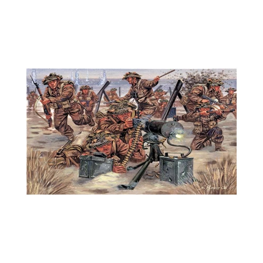 1/72 British Infantry Italeri 6056On June 6th,1944, General Dempsey’s troops of the British Expeditionary Force, composed by the 3rd and 50th English Division and by the Canadian 3rd Division, landed on the beaches of Normandy codenamed Sword, Juno, and Gold. The D-Day had thus come. The British Expeditionary Force was to land and quickly take over the town of Caen. Americans, landing at Omaha and Utha in the West, were to seize control of the Cotenin peninsula and the Cherbourg port.