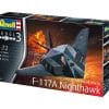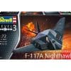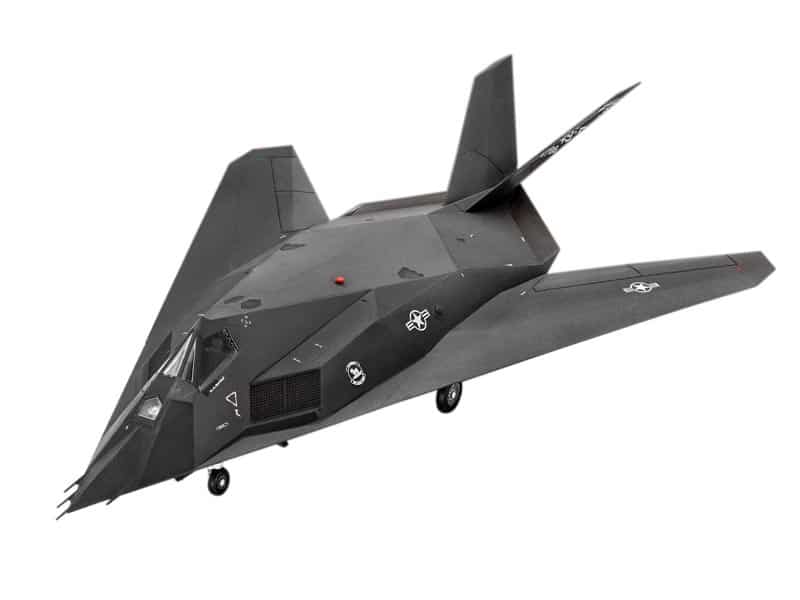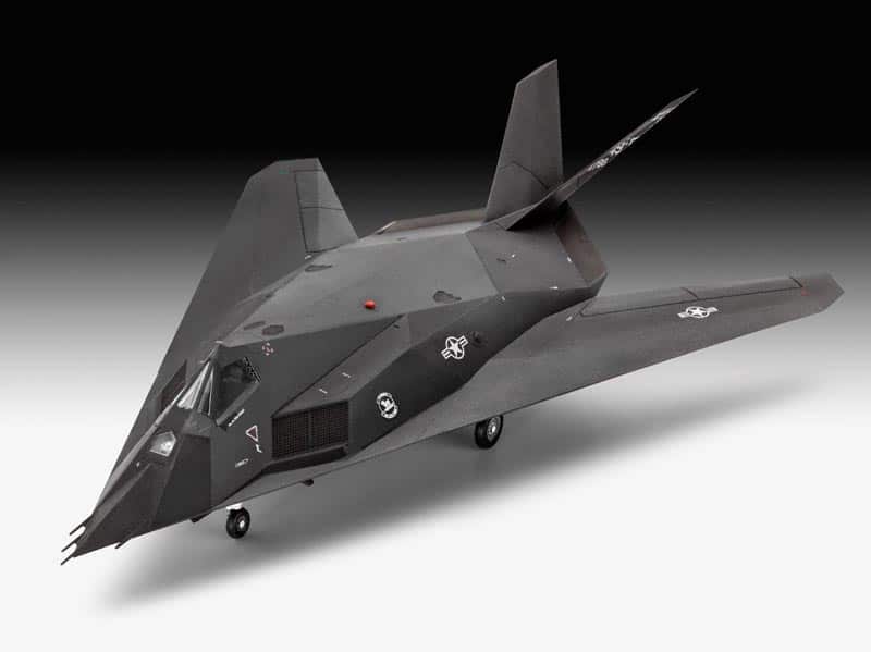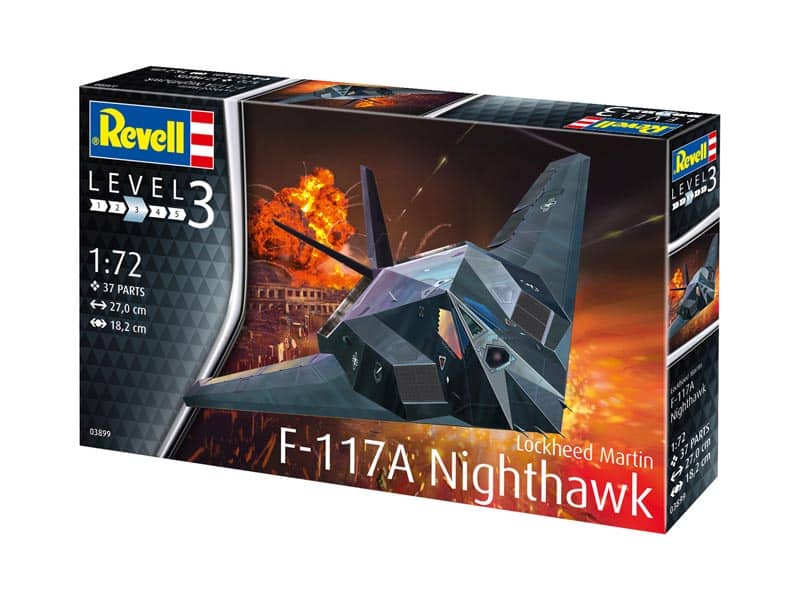 Developed at the highly secret ‘Skunk Works’, the F-117A Nighthawk was the first operational stealth fighter to be developed for the US Air Force, its multi-faceted design and construction materials giving it a very low radar signature. Revell’s detailed model captures the Nighthawk’s unique shape to perfection and includes a detailed cockpit, pilot figure, undercarriage and bomb bay with two laser guided bombs.