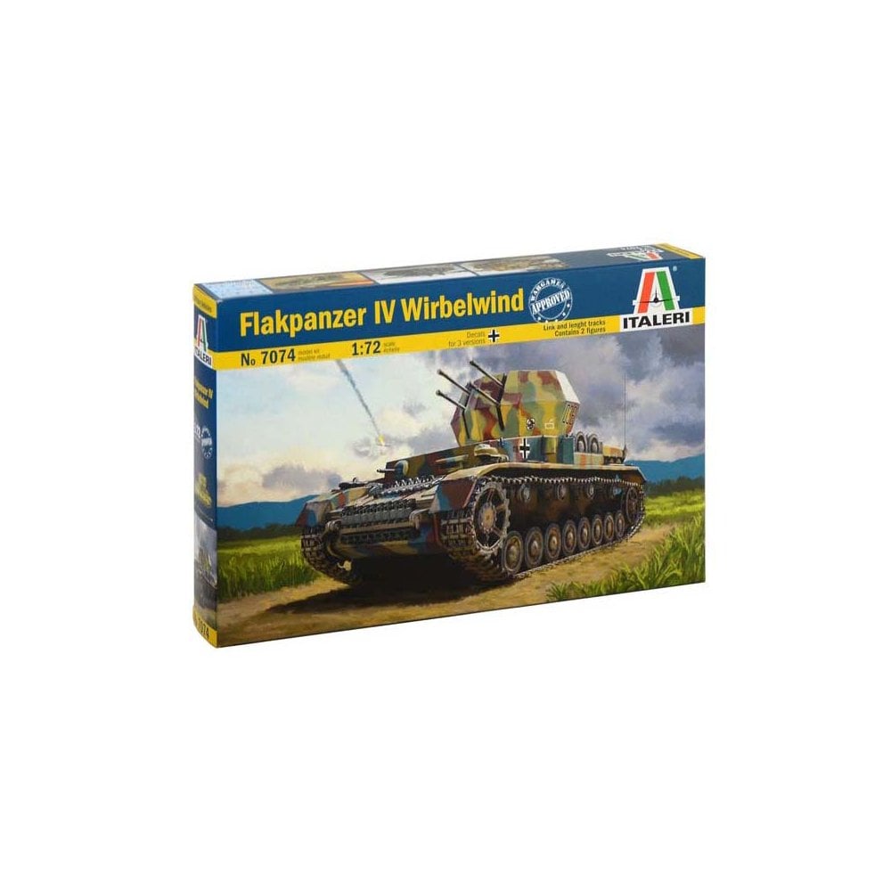 1/72 Flakpanzer Iv Wirbelwind Sd.Kfz Italeri 7074FLAKPANZER IV WIRBELWINDLINK AND LENGHT TRACKS – CONTAINS 2 FIGURESThe Panzer IV was the most extensively used German tank during the Second World War. It represented the backbone of the German Panzer Divisions on all operational theaters. Toward the end of the war, based on the Panzer IV hull, the self-propelled anti-aircraft gun Wirbelwind was developed to improve the air-defense capability of the ground troops against the Allied air-superiority. From the second half of 1944, the Flakpanzer IV Wirbelwinds were assigned to the anti-aircraft units of the German armored and motorized divisions. The Panzer IVs turret was removed and replaced with an open-top turret and armed with a quadruple 20 mm Flak 38 L/112.5, which provided a rapid fire and good firepower. The Wirbelwind was quite effective against low-altitude attacks of enemy fighters, but it was also used against lightly armored ground targets such as infantry, trucks and armored cars.
