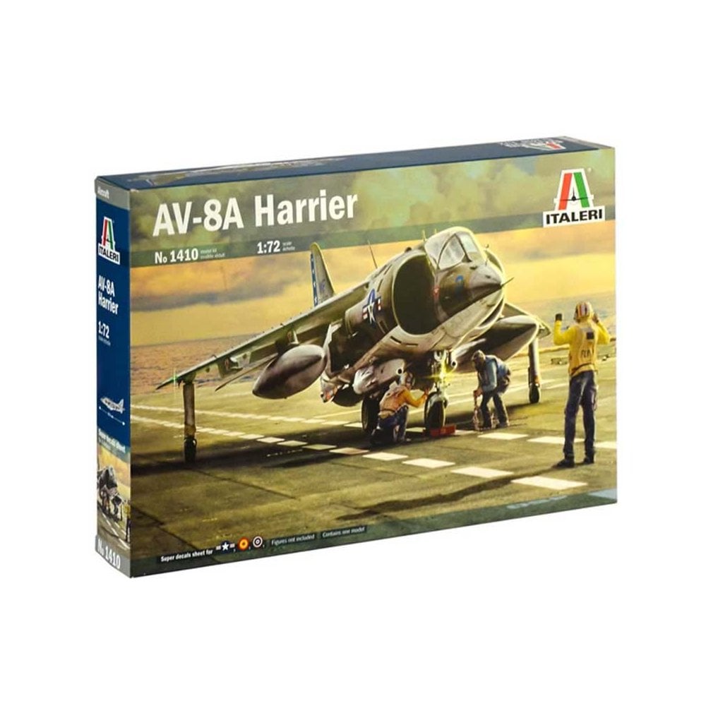 1/72 Harrier AV-8A Italeri 1410SUPER DECALS SHEET FOR 2 VERSIONS – COLOR INSTRUCTION SHEETThe Harrier is probably the most famous aircraft with vertical/short takeoff and landing capabilities of military History. Designed and developed by the British manufacturer Hawker Siddeley in the sixties, it was largely used, in its various versions, by British Royal Air Force and Royal Navy. The United State Marine Corps showed a significant interest in the aircraft that could be the ideal answer the operating needs. The single-seat AV-8A was specifically developed for the USMC and entered service in 1971, in the Marines attack squadrons. The AV-8A was able to operate from the ground bases and from the converted amphibious assault ships. The AV-8A could successfully perform close support, ground attack and air defence duties. It was very appreciate by USMC in fact the AV-8A was fully integrated with the other landing vehicles and helicopters during the Amphibious assault operations.