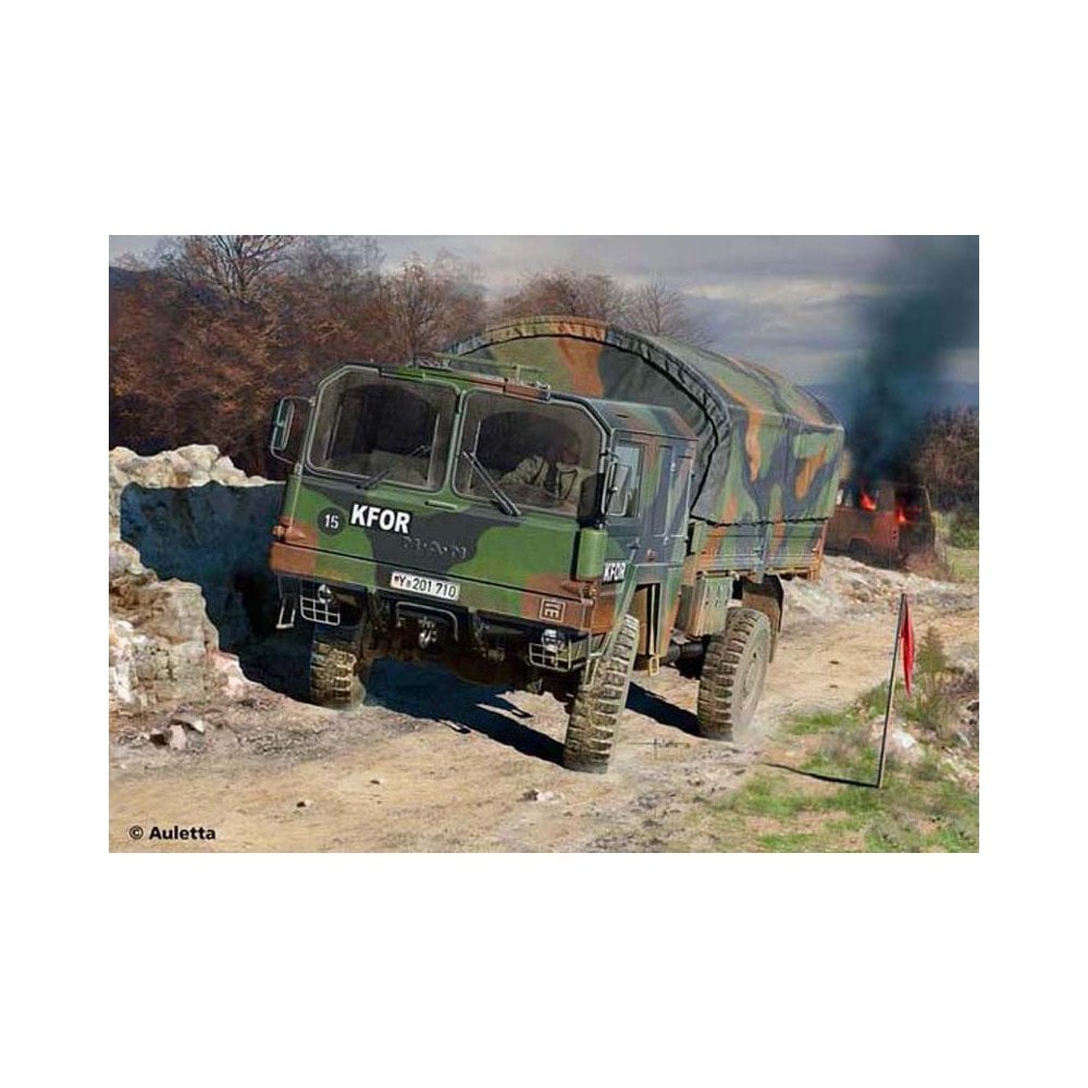 For the movement of supplies to troops on the battlefield, the Federal German Army uses high mobility off-road vehicles. At the end of the nineteen seventies MAN introduced the Lkw 5 t mil gl which, due to its all-wheel drive (4×4) and free-moving axles meets the requirements and is therefore one of the best trucks of its class in the world. With its 256 bhp V8 engine it can reach a maximum road speed of 90 km/h.Model- Finely engraved surface details