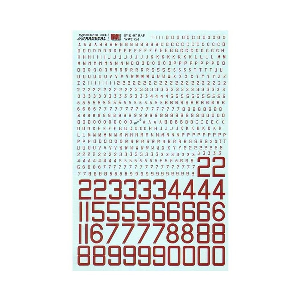 1/72 RAF WWII Red 8′ serial letters and numbers X72126 Xtradecal