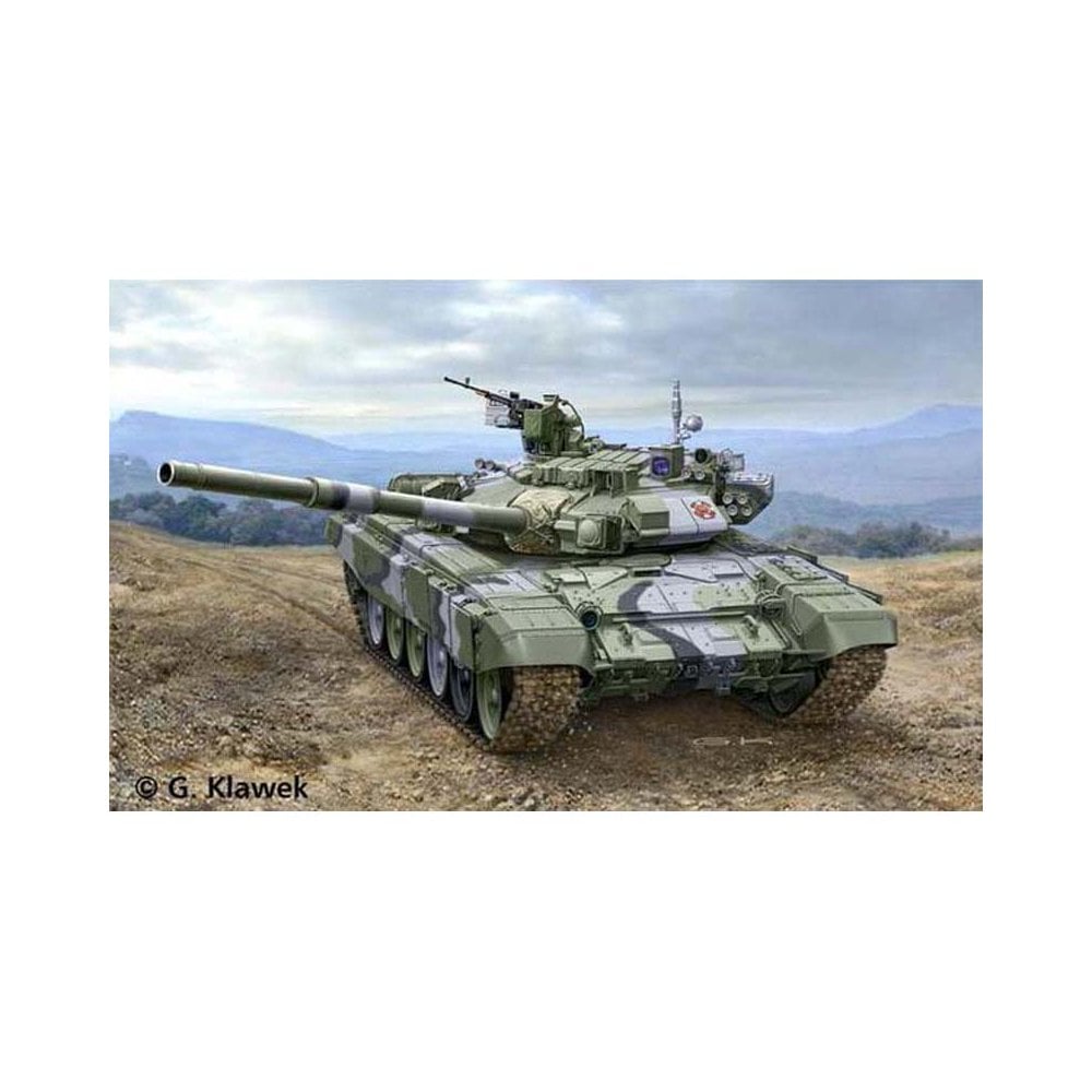 The T-90 is the most advanced Main Battle Tank in the Russian Army. The 125 mm smooth-bore gun fires classic types of ammunition as well as guided missiles. The second generation T-90A has been in production since 1999. The biggest distinguishing features when compared to the original T-90 are the new track end links, the welded turret and the engine. The low silhouette, explosive reactive armour and the TShU-1-1 Schtora self-protection system ensure a high level of protection. The latter is an incoming missile decoy system. In addition to the Russian Army (T-90A), Algeria and Azerbaijan use the T-90SA export variant.Model- New track link pins