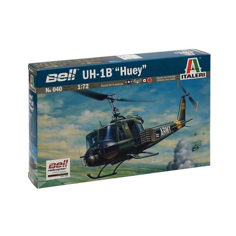 UH – 1B HUEY”This helicopter, designed by Bell at the end of the fifties, is still in service to-day in its newer and later versions. It is by far the most widely used rotating wing aircraft the world has seen. The Huey was extensively used during the Vietnam conflict by the U.S. Forces, mainly in support and attack sorties equipped with various armament. Thanks to its reliability and robust construction the UH-1 was quickly aquired by the armed forces of many countries (among others Italy, Japan, Sweden, and Holland). UH-ls remained in ?service until the end of the seventies and were then substituted by its more modern and sophisticated versions. Technical data: Fuselage length: 11.70 m