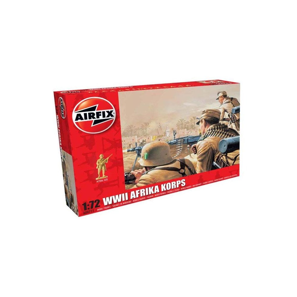 Airfix 1/72 WWII Afrika Corps, A0071148 FiguresRommel’s, crack troops, the Afrika Korps, fought Montgomery’s 8th Army, the “Desert Rats”, across the North African desert culminating in the major Battle of El Alamein. This superb set contains various fighting poses as well as a senior staff officer.