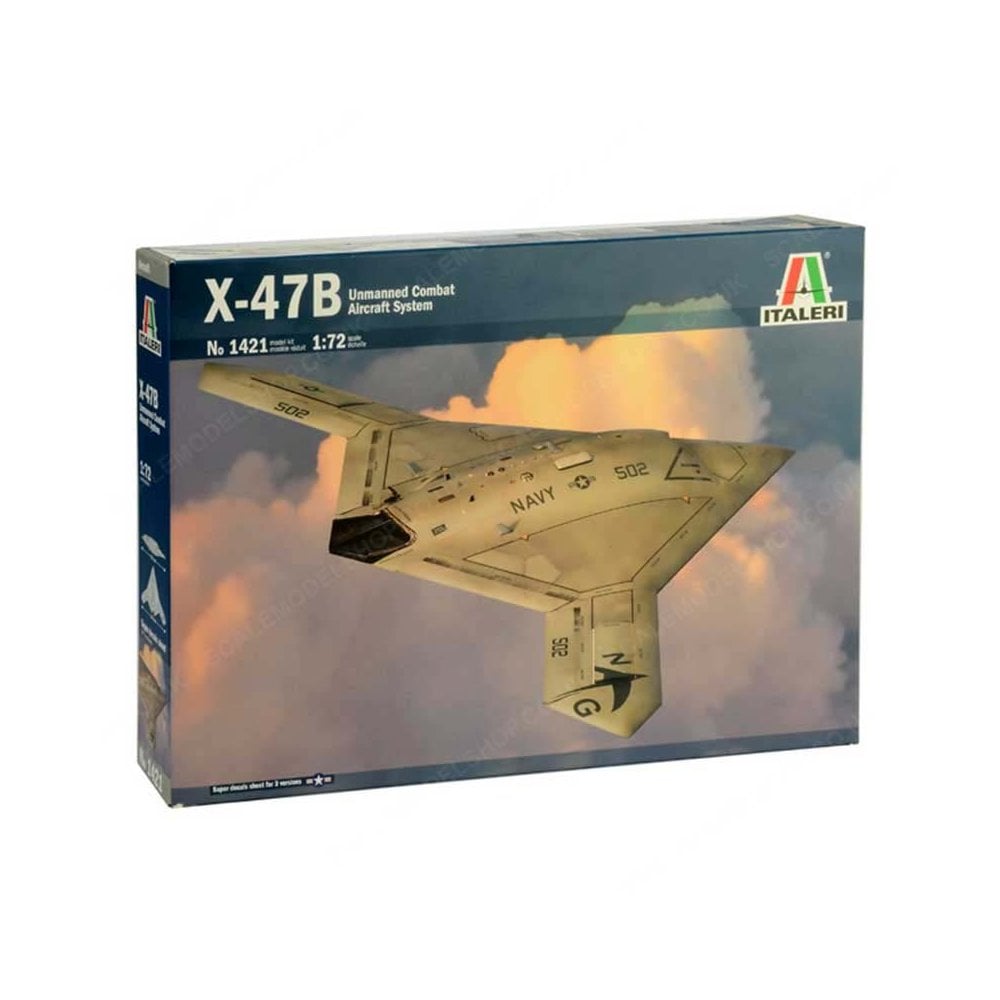 1/72 X-47B Italeri 1421The Northrop Grumman X-47B is an demonstration unmanned combat air vehicle (UCAV) expressly designed and developed to operate from the flight decks of the US Navy aircraft carriers. The X-47B flew for the first time in 2011 and has performed, in the following years, several operational tests completed in 2015. The X-47B was used in the test cycles on board the U.S.S aircraft carrier George H.W. Bush (CVN-77) and it performed take-off, landing, air-refueling duties. To optimize the on board capability the X-47B is equipped with folding wings in order to minimize the space on the over crowded flight decks of the aircraft carriers. It is equipped with a Pratt & Whitney turbofan engine that guarantees subsonic performance and in its two loading bays it can provide an offensive load of over 2,000 kg.