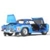 Measuring 48.2 cm long, 18.7 cm wide and 14.9 cm high, it weighs over 6 kg and is made up of over 615 parts, 113 of which are metal, offering exceptional quality and precision. Complete with sound and light effects, this replica immerses you in the captivating world of the Alpine A110. All the doors open to reveal a meticulously reproduced interior, while the rear bonnet lifts to reveal a faithfully reproduced engine.