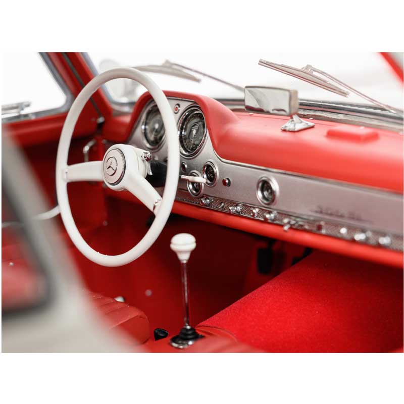 The speed of the 300 SL was unprecedented, much higher than that of any other road car: 240 km/h, when most of its contemporaries only reached half that figure. But for such a price, the lucky owners weren’t just buying performance, because it was the design that made the 300 SL a masterpiece. The car was perfect from every angle, crowned by its unique blend of exclusivity and functionality, of which the extraordinary gull-wing doors were the most unusual element. With this design, the 300 SL became the world’s first mass-produced sports car, even before the Ferraris, Lamborghinis and others.