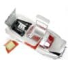 The gull-wing doors, bonnet and boot open to reveal a realistic interior rich in detail